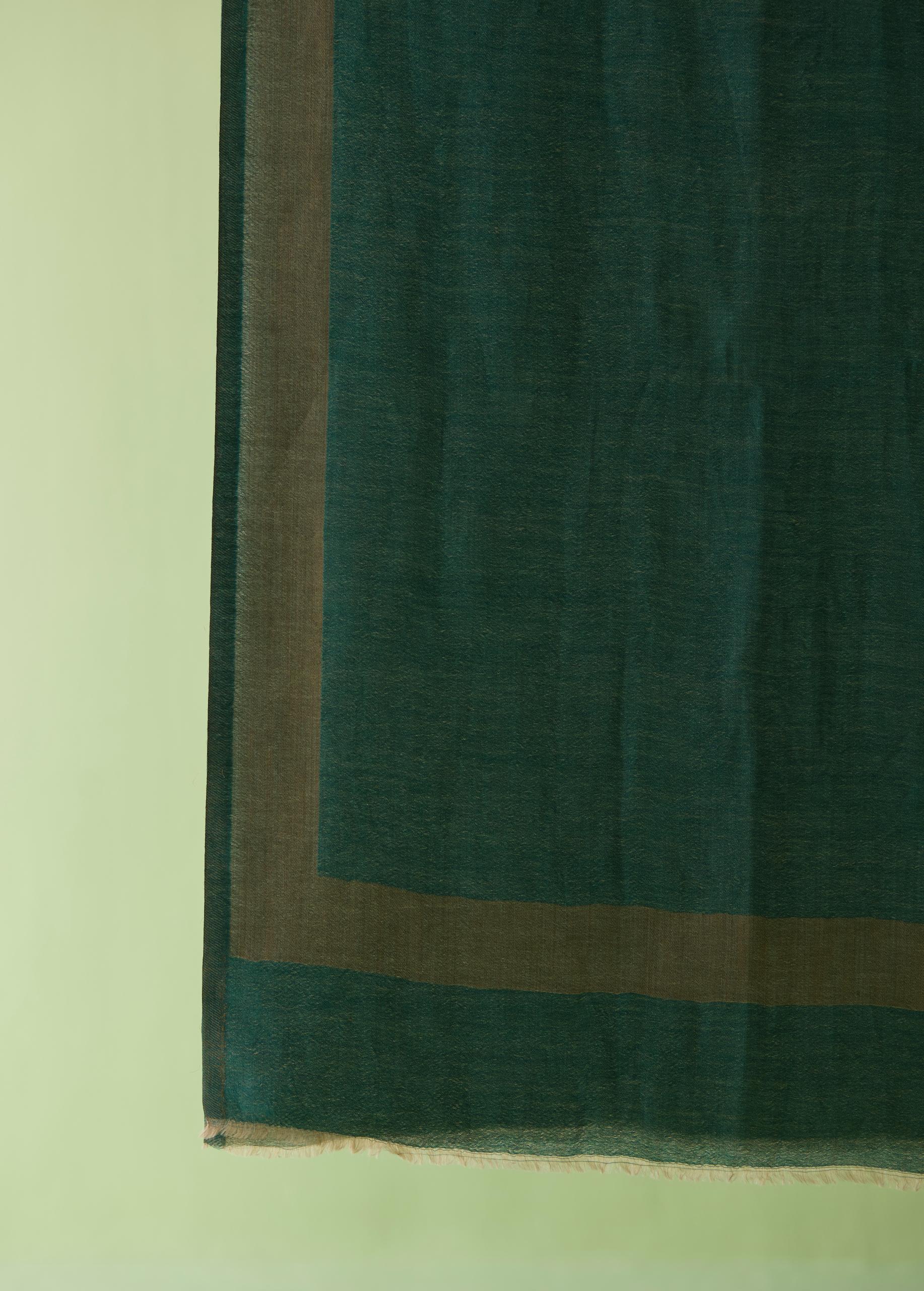 The Emerald Edge Fine Wool Stole blends earthy warmth with a striking pop of emerald. Crafted in ultra-soft fine wool, it features rich, tonal shading and elegant four-side borders that frame the drape beautifully. Lightweight yet luxurious, this versatile accessory adds sophistication to both everyday ensembles and evening looks.