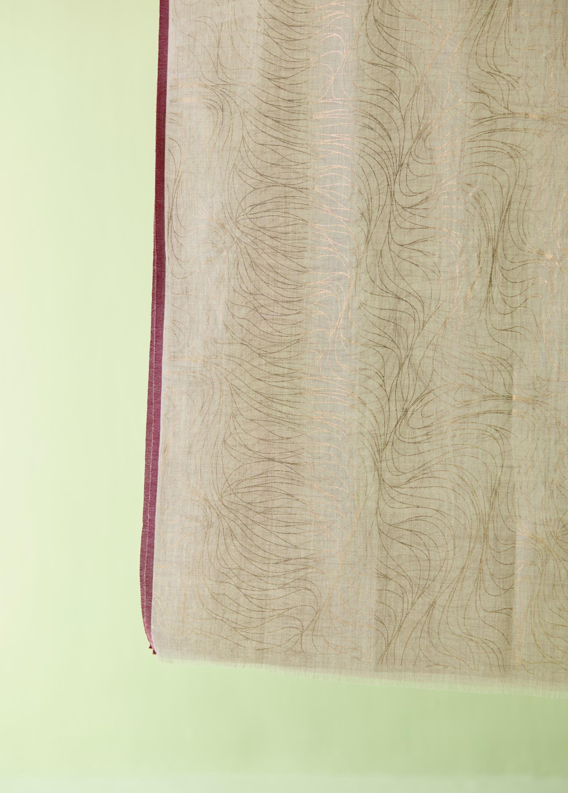 Golden Whirl Fine Wool Stole – Off-White & Maroon Edge