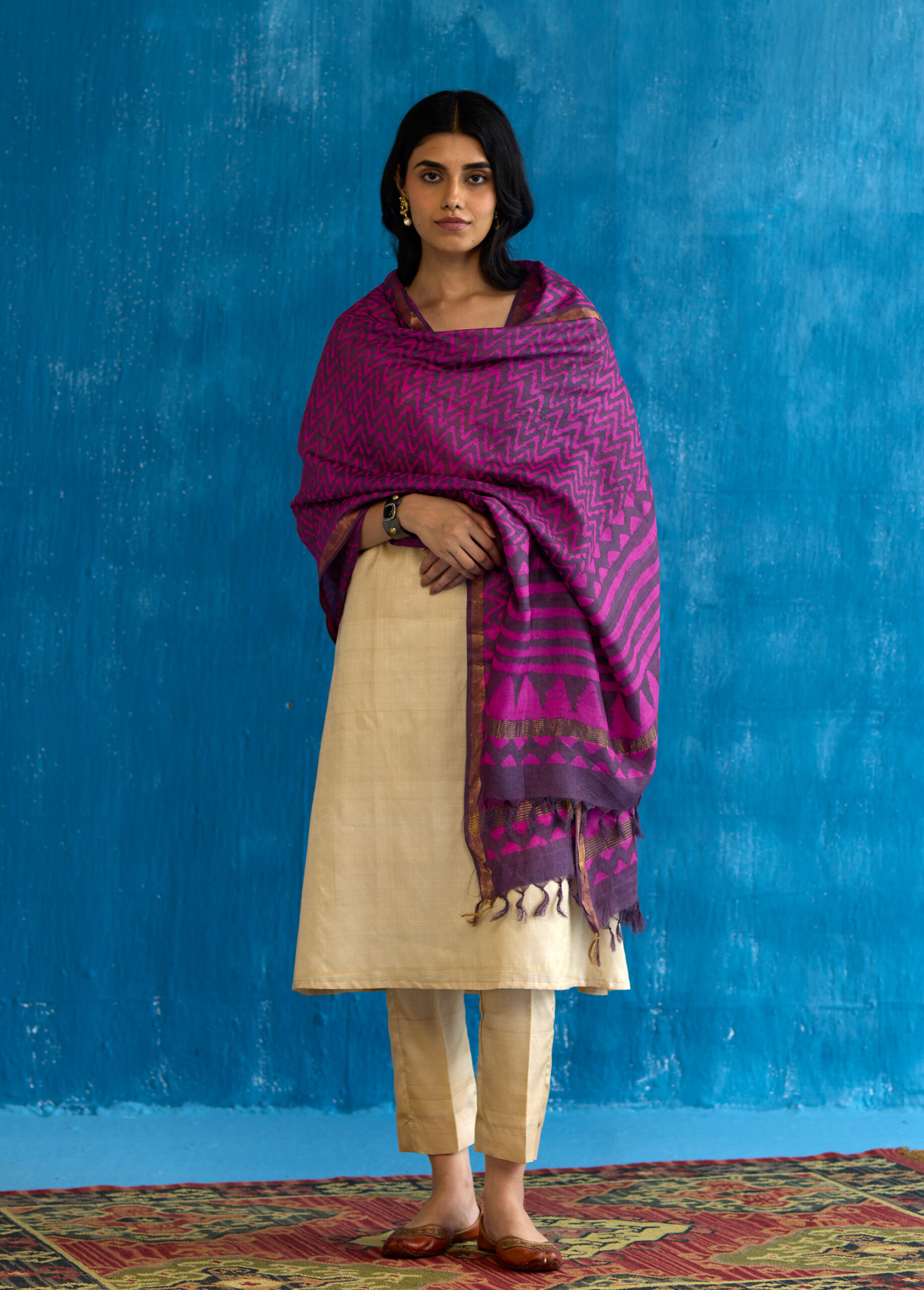 Royal Fuchsia Shibori Kosa Silk Dupatta