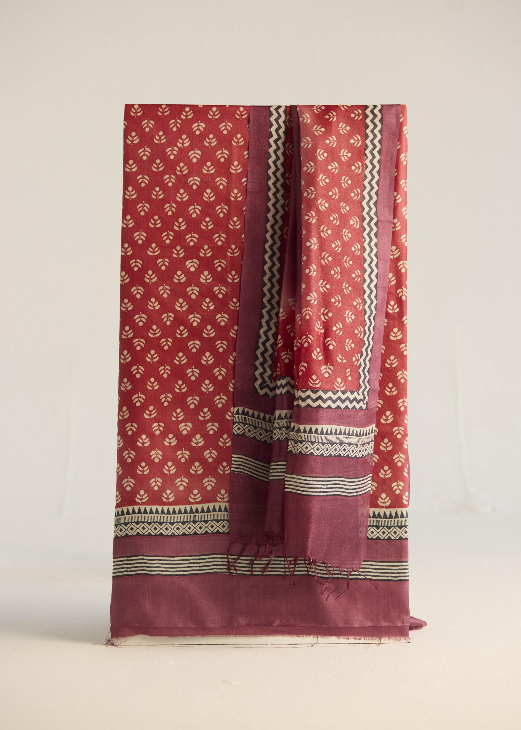 Scarlet Bloom Kosa Silk Unstitched Suit – Hand Block Printed